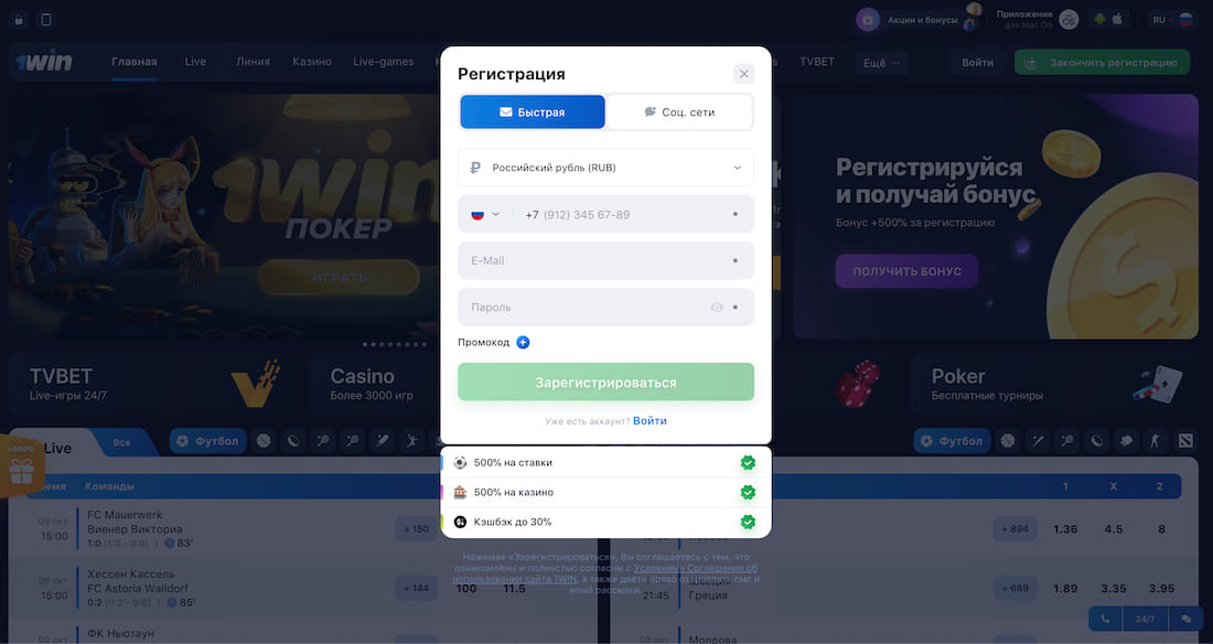 Зарегистрироваться в системе Букмекерской конторы - это первый шаг для начала использования всех возможностей данной платформы. Эта букмекерская контора предлагает большой выбор ставок на разные виды спортивных соревнований, а также игры, лотереи, казино. Зарегистрироваться на сайте 1вин можно очень быстро и просто.