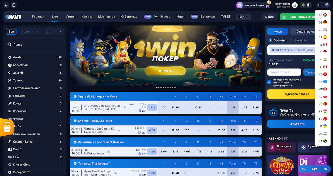 1вин - это известная букмекерская компания, которая предоставляет своим клиентам большой выбор спортивных состязаний и игорных удовольствий. Предприятие было основано в 2016 и с того времени завоевало доверие десятков миллионов покупателей со всего мира.
